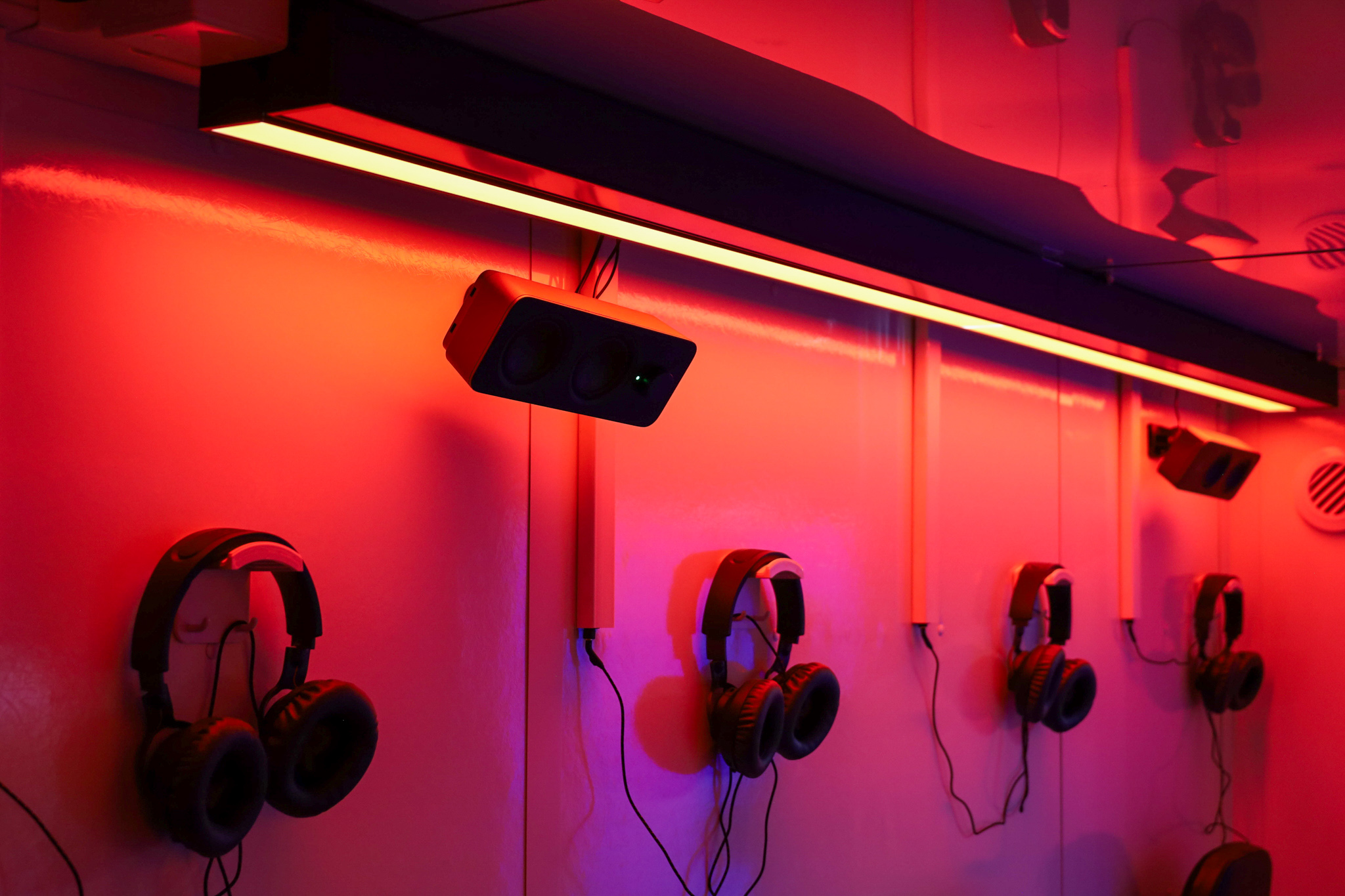 The Mixed Reality Suite is an immersive training space where students interact with virtual and physical elements in real time. High-resolution displays, mixed reality headsets, and motion-tracking sensors provide flexible, hands-on scenario training, while surround sound and visual feedback create a fully engaging simulation environment. Curved corner panels reduce corner shadows and vinyl door covers allow for entry and emergency egress without disrupting the chroma blue environment.