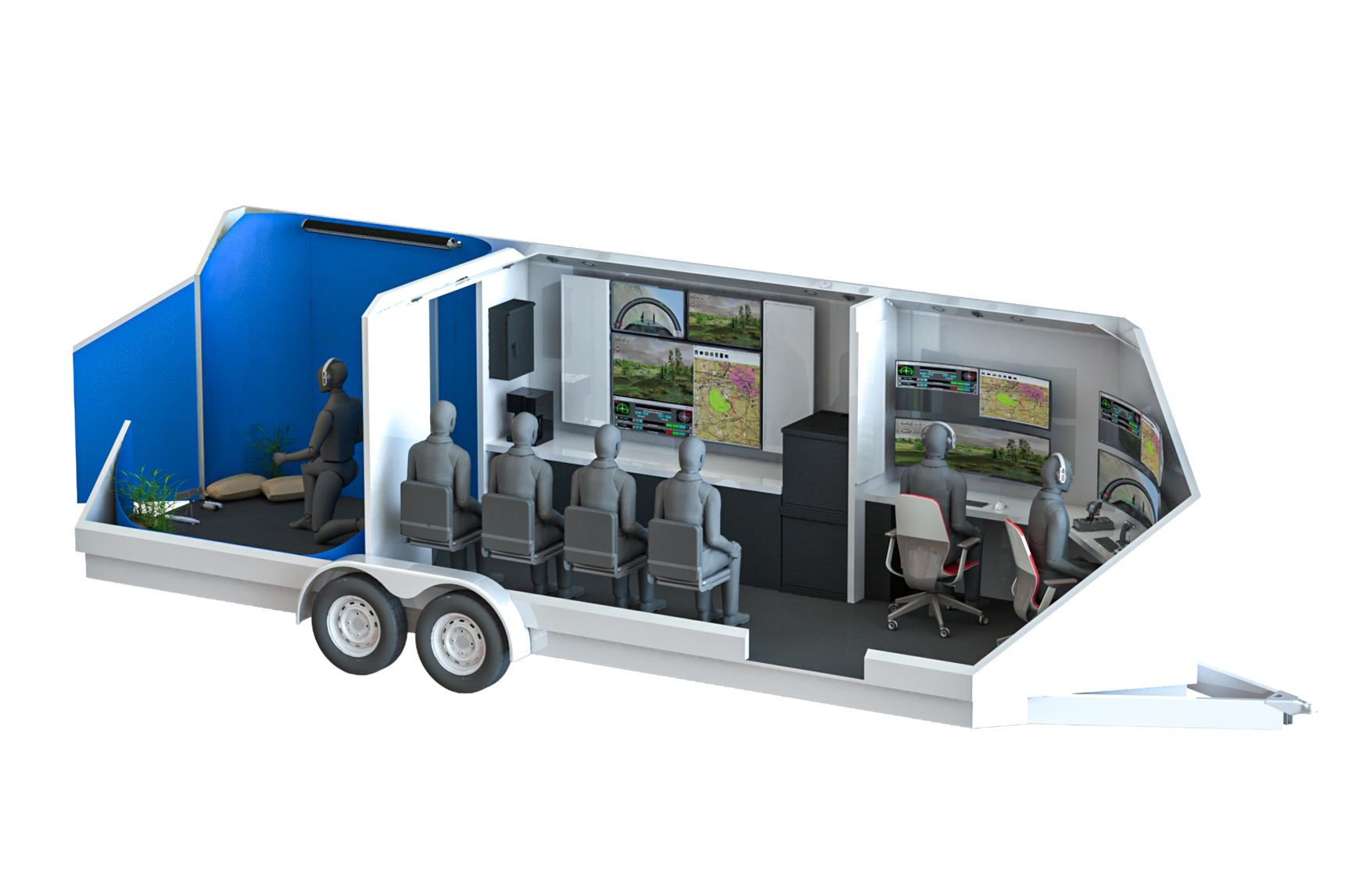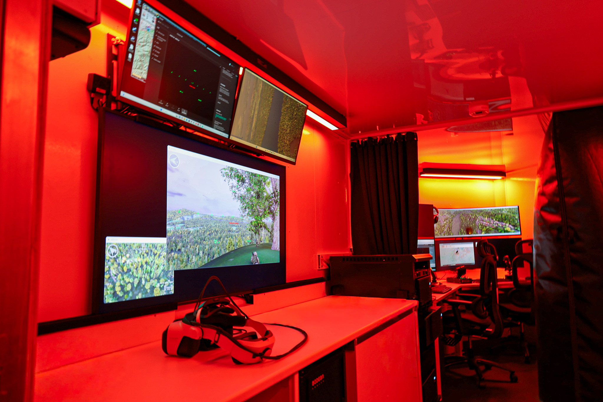 EDEY FX, in partnership with Allen Vanguard and Hyperion, has developed a mobile, advanced trailer-based JTAC simulator designed for immersive training and fully configurable learning environments. Trainees and instructors benefit from mixed reality integration, real-time scenario monitoring, and adaptable workstation layouts that enhance both individual and group training experiences.
